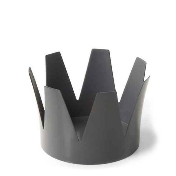 Kruunu on pöydälle sijoitettava biojäteastia, se on suunniteltu esim. tiskipöydälle käden uloittuville. Kruunu riittää hyvin ainoaksi biojäteastiaksi pienelle kotitaloudelle. Asian sisään asetetaan sanomalehden sivu, jonka sisään biojätteet kerätään. Suunnittelija: Elina Koskelainen