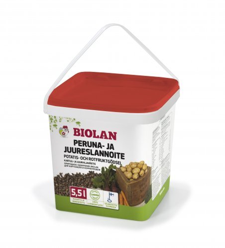 Biolan Peruna- ja juureslannoite on luomuviljelyyn soveltuva erikoislannoite hyvälaatuisen peruna- ja juuressadon viljelyyn. Se sisältää kaikkia kasvin tarvitsemia ravinteita. Lannoitteeseen on lisätty perunan ja juuresten laatua parantavaa kaliumia, joka muun muassa ehkäisee perunoiden tummumista. Lannoite on kuivattu ja rakeistettu, joten sen käyttö on siistiä ja helppoa. Peruna- ja juureslannoite voidaan annostella suoraan istutusvakoon.