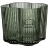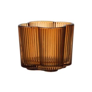 Ruskean lasilyhdyn pinnassa kulkee pystysuuntaisia uurteita, jotka tuovat eloisuutta ja korostavat lasin läpikuultavuutta. Lyhdyn epäsäännöllinen, aaltoileva muoto ja neljä kaarevaa sivua tekevät siitä veistoksellisen ja persoonallisen sisustuselementin. Soveltuu lämpökynttilöille ja pienille LED-kynttilöille. Koko 8,5 x 8,5 x 7,7 cm