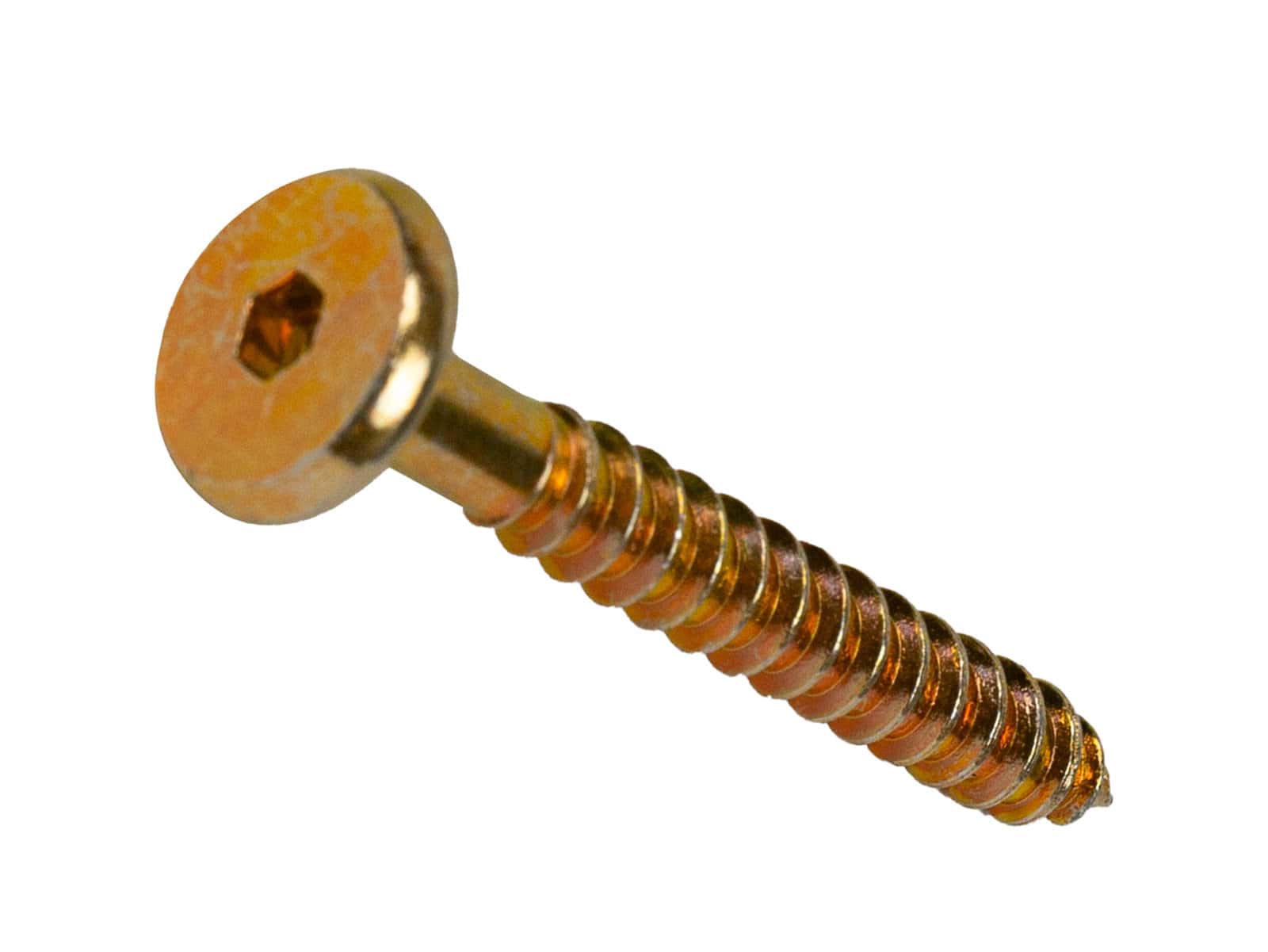 Huonekaluruuvi, puukierteellä. Teräs, keltasinkitty. Mitat 6,3 x 50 mm. Sopii nimensä mukaisesti huonekalujen kasaamiseen.