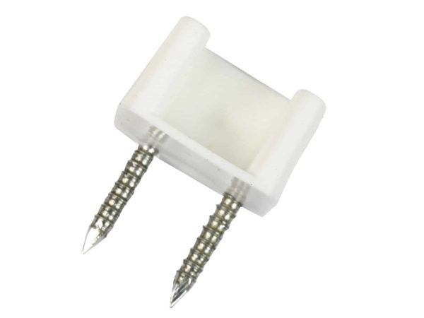 Muovinen hyllynkannatin naulalla. Väri valkoinen. Lovimalli, jonka leveys 10 mm. 12 kappaletta paketissa.