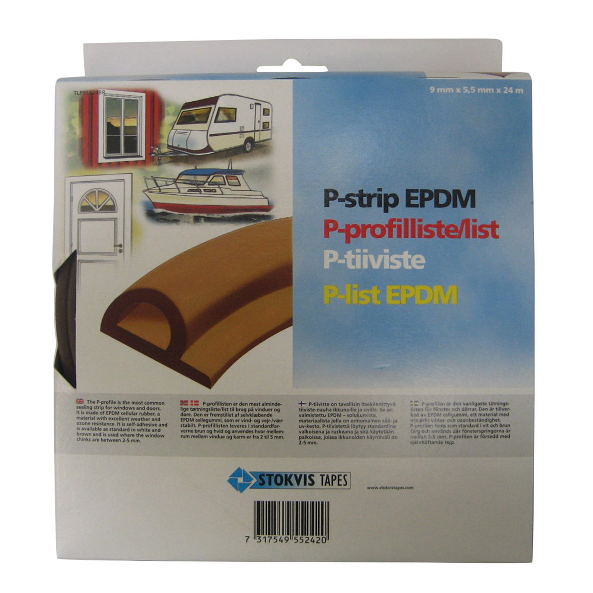 Stokvis Tapesin ikkunatiivistenauha on valmistettu EPDM-umpisolukumista, joka kestää erinomaisen hyvin ikääntymistä, sään vaikutuksia sekä UV-säteilyä. Tiivisteen liimaosa ei kuitenkaan kestä suoraa UV-valoa ja tämä kannattaa asennettaessa ottaa huomioon, eikä kiinnittää tiivisteen liimapuolta esim. lasiin, jossa se altistuu valolle. Tiivistenauha on 5,5 mm paksu ja 9 mm leveä ja se sopii hyvin tiivistämään 2 – 5 mm:n rakoja sekä ikkunoissa että ovissa. Tiivisteen asennuskohteen on oltava puhdas ja kuiva parhaan kiinnittymistuloksen saavuttaaksesi. Asennus tulee suorittaa vähintään +5 °C lämpötilassa, mutta asennettuna tiiviste kestää jopa -40 °C:n pakkasia. Pakkauksessa on 24 metriä ruskeaa P-profiilin tiivistenauhaa.