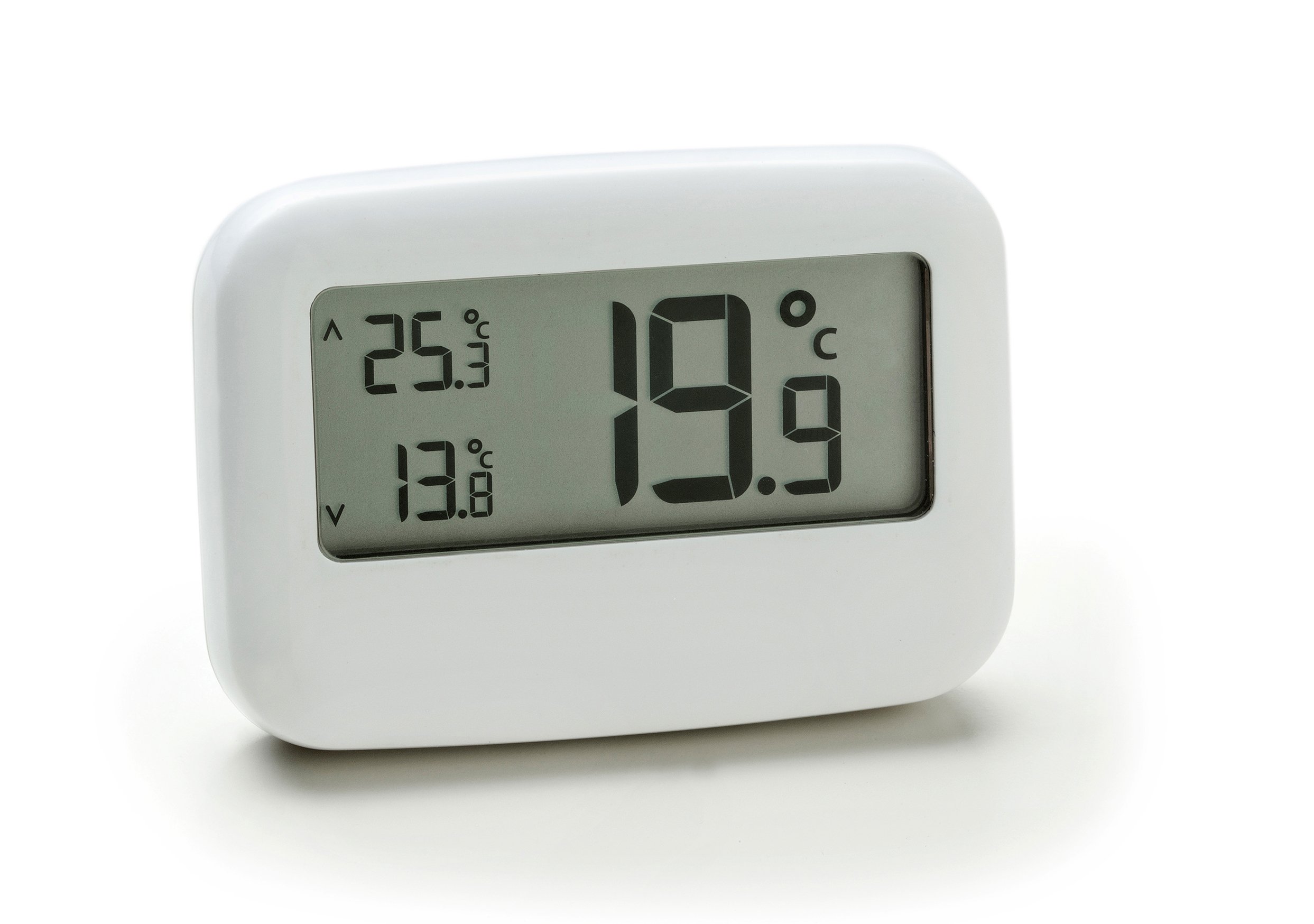 Helppokäyttöinen lämpömittari kylmälaitteiden lämpötilan seurantaan kotona, suurkeittiössä, kahvilassa tai vaikkapa kioskissa. Mittarin voi kiinnittää mukana olevan käännettävän kehyksen avulla jääkaapin seinään tai esim. vihanneslaatikkoon, jolloin se on helposti luettavissa heti kun jääkaapin oven avaa. Näytössä näkyvät maksimi- ja minimilämpötilat.