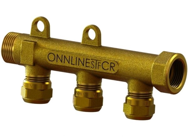 Jakotukki PEX-liittimin 3/4-3×1/2 erikoismessinki.