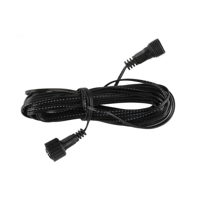 10 m jatkojohto uros/naaras liittimillä. Soveltuu 3V – 36V max. 1000mA valoketjuille. Musta johto.