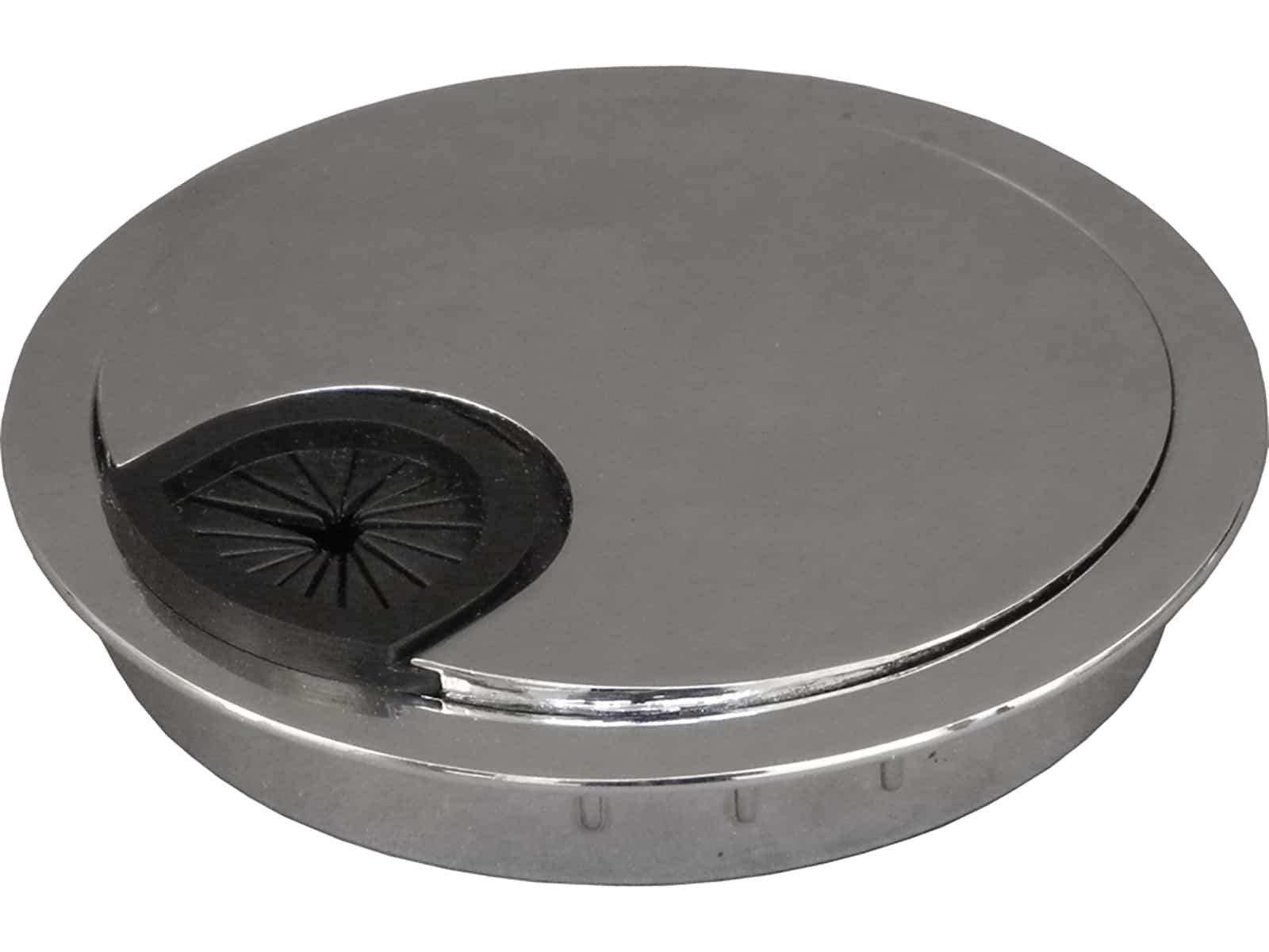 Pöytätasoon valmistettu läpivienti esim. kaapeleille. Halkaisija 80 mm. Kromattu.