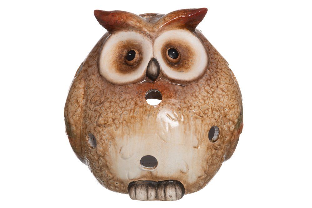 Suloisen pöllön muotoon muotoiltu lyhty hurmaa yksityiskohdillaan ja pehmeillä ruskean sävyillään. Sen pyöreä hahmo ja lempeä ilme tuovat hymyn huulille ja tekevät siitä ihastuttavan katseenvangitsijan niin olohuoneessa, makuuhuoneessa kuin vaikka terassilla. Aseta lyhdyn sisään kynttilä tai LED-valo, ja anna sen lempeän hehkun valaista iltojesi hetkiä. Koko 18 x 18 x 18 cm.
