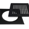 . Mustalla epäkeskeisellä muoviasennuskehyksellä. Epäkeskeistä asennuskehystä apuna käyttäen neliökansi on helppo asentaa halutun laattajaon mukaisesti.