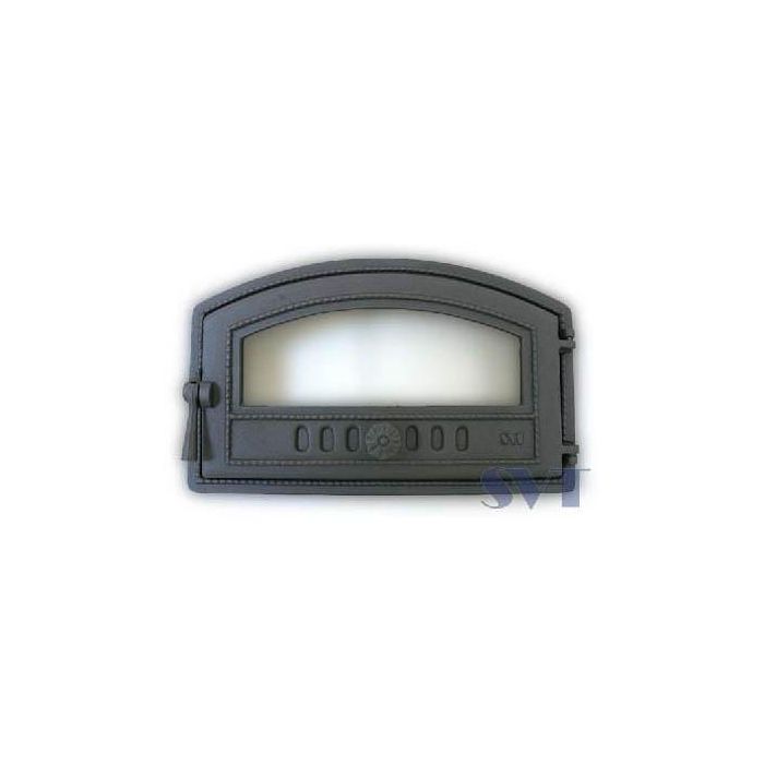 Oikeakätinen lasillinen leivinuuninluukku 424, kaasutiivis. 180/230×410. Valurauta.