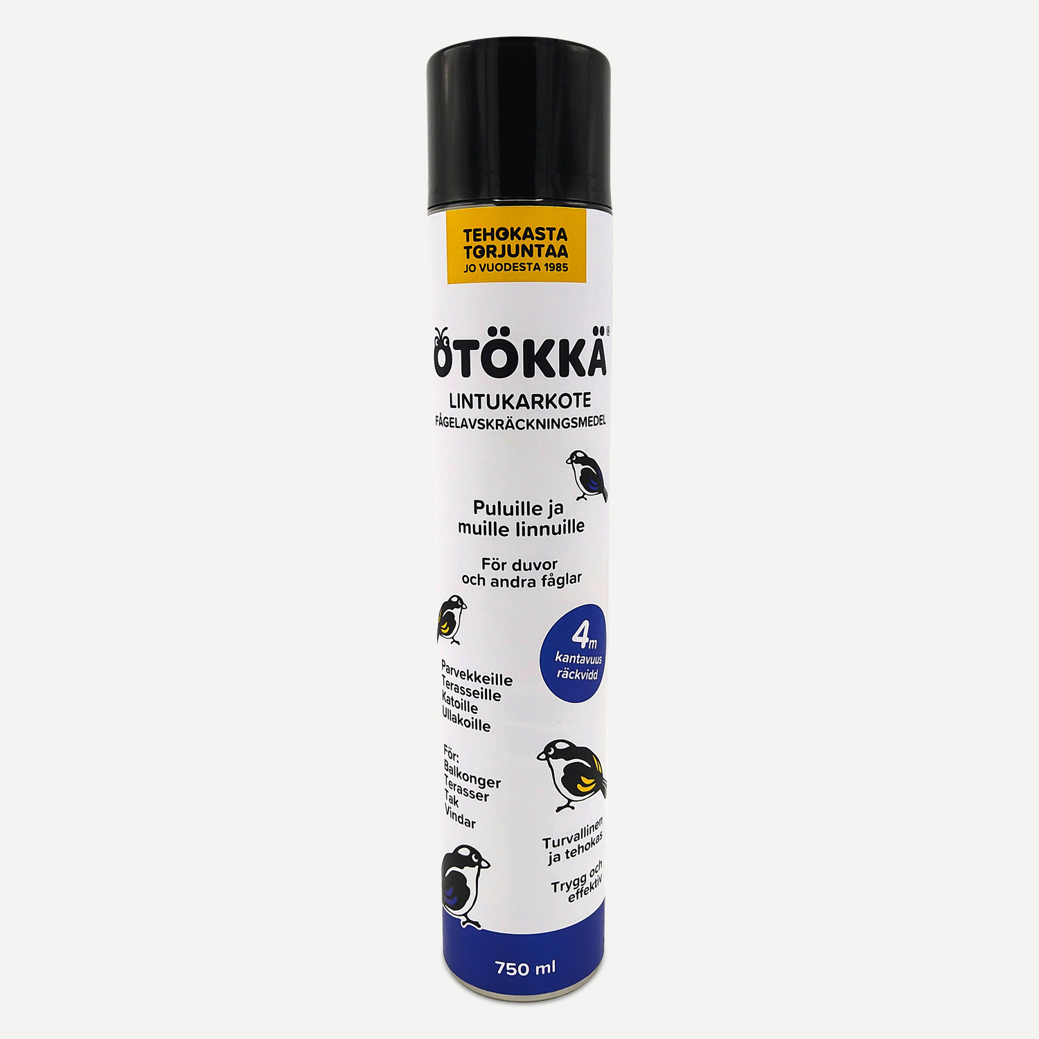 Ravista voimakkaasti ennen käyttöä. Suihkuta suoraan pinnalle ja varmista, että koko tarvittava alue tulee käsiteltyä suihkeella. Toista käsittely 15 päivän välein, jotta linnut pysyvät poissa. Parantaaksesi suihkeen tehoa ja kestävyyttä, käsiteltävät pinnat on hyvä puhdistaa liasta ja jätöksistä ennen suihkuttamista. Suihkuta tuotetta vain pinnoille, tuotetta ei tule suihkuttaa ilmaan eikä ihmisiä kohti.