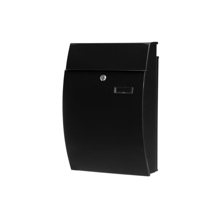 32,2 x 48 x 15,5 cm. Kaarevapintainen lukollinen teräspostilaatikko. Mustaksi jauhemaalattu pinta. Sylinterilukko, mukana tulee kaksi avainta.