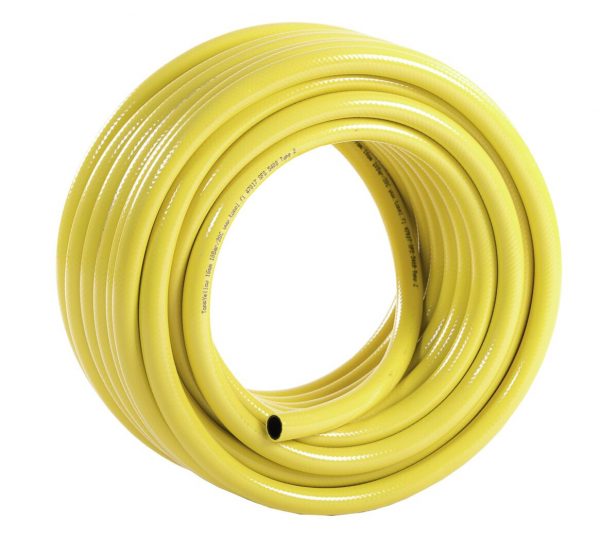 Keltainen kiertymätön vesiletku, työpaine 25bar. Paksuus 16mm, pituus 25m.