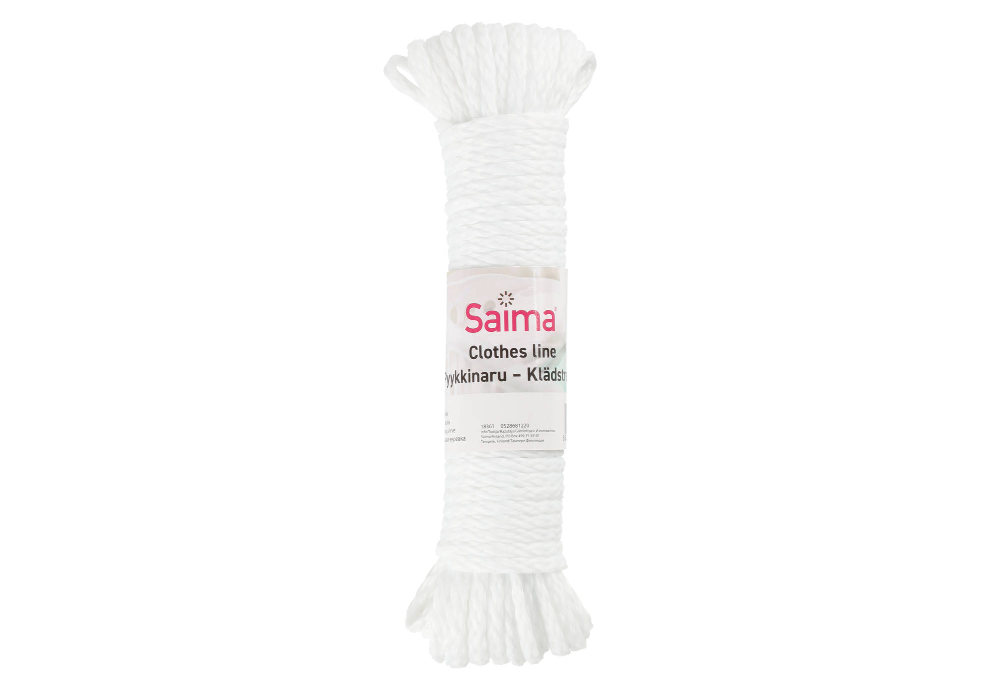 Saima Pyykkinaru valkoinen 20 m Vahvuus 6 mm. Narun pituus 20 metriä ja paksuus 6 m.