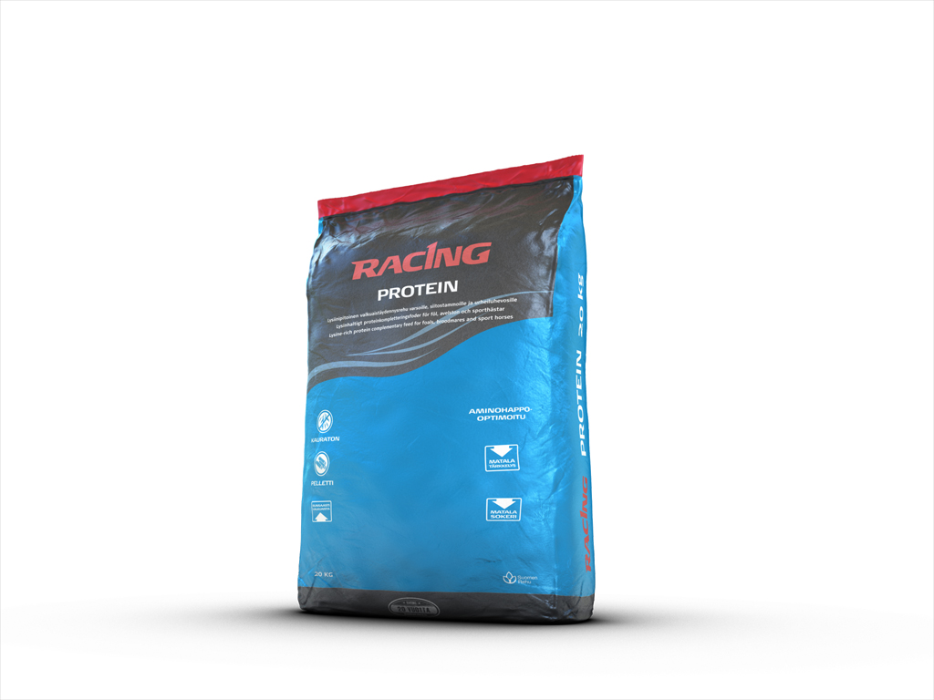 - Racing Proteinin teho perustuu korkean valkuaispitoisuuden lisäksi tarkoin harkittuun aminohappokoostumukseen. Racing Protein sisältää lysiiniä hevosen tarvetta vastaavasti. Käyttö varmistaa kantavan tamman sekä kasvavan varsan riittävän ja monipuolisen valkuaisen saannin. Monipuolisen valkuaiskoostumuksen ansiosta rehu sopii myös lihasmassan kehittämiseen urheiluhevosille peruskuntokaudella.