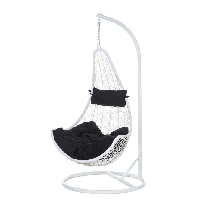 PE-rottinkipunoksesta valmistettu riipputuoli teräksisellä jalkaosalla. Kannatinkehys 93 x 197cm. Riipputuolin mukaan kuuluu istuin- ja selkätyyny narukiinnityksellä. Tuolin kantavuus on 130kg.