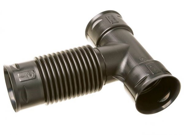 Taipuisa T-haara muhvilla sadevesiputkelle 110mm, taivutuskulma 0-60 astetta. Taipuisa kulma helpottaa sadevesiputkien asennusta, kätevä mm. rännikaivon asennuksessa. T-haara sisältää lukittuvat muhvit.