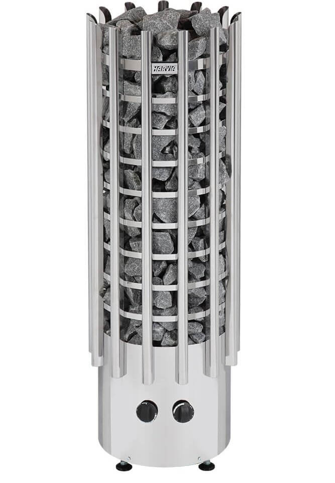 Harvian Glow korkea ja näyttävä sähköpilarikiuas digitaalisella ohjauksella. Teho 6,8kw. Maksimikivimäärä 80kg (5-10cm kiuaskiviä).