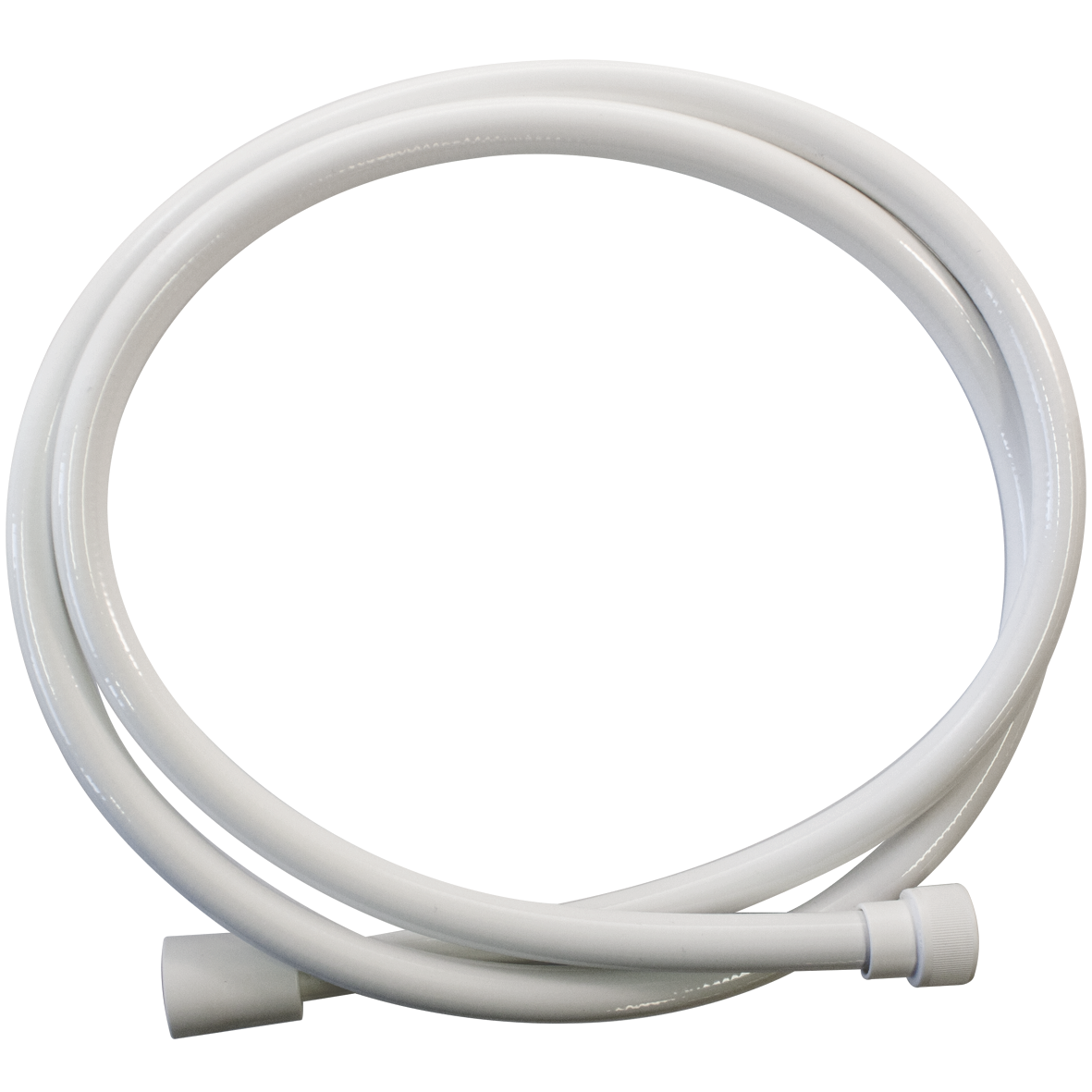 Valkoinen muovinen suihkuletku, jonka pituus on 1,5m.
