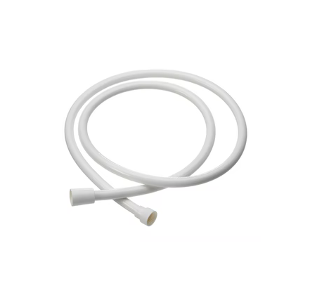 Valkoinen muovinen suihkuletku, jonka pituus on 2,0m. Letkun molemmissa päissä on G1/2 liittimet.