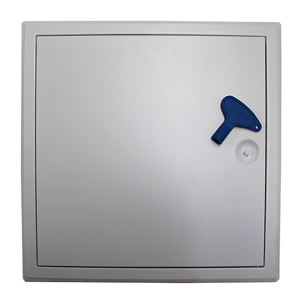 Avattava tarkastusluukku seinä ja kattopinnoille. Valkoinen, ulkomitta 185x185mm.