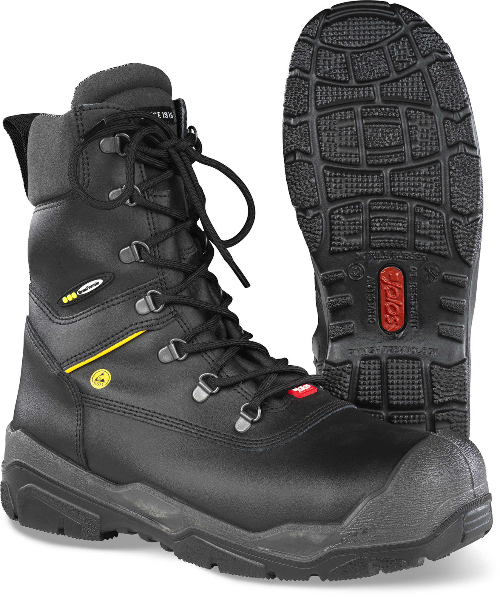 Kuvaus: Kärkikuppi, tilava lesti, kuumuuttakestävä ulkopohja, öljyä kestävä ulkopohja, antistaattiset ominaisuudet, pehmustettu varsiosa, hengittävä pohjallinen, vetolenkit, vetoketju, vettähylkivä, kaksinkertaiset iskunvaimennysvyöhykkeet, täyttää IEC 61340-5-1 (ESD) – vaatimukset. Koot 35-50, osa pidemmällä toimitus ajalla.