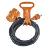 Yksiosainen jatkojohto rakennustyömaille ja muihin vaativiin tiloihin. Soveltuu myös ulkokäyttöön, roiskevedenpitävä, kotelointiluokka IP44. Kumikaapeli H07RN-F 3×1,5 mm². Pituus 10 m. Pistorasian läppäkansi suojaa roskilta ja vahingoilta.