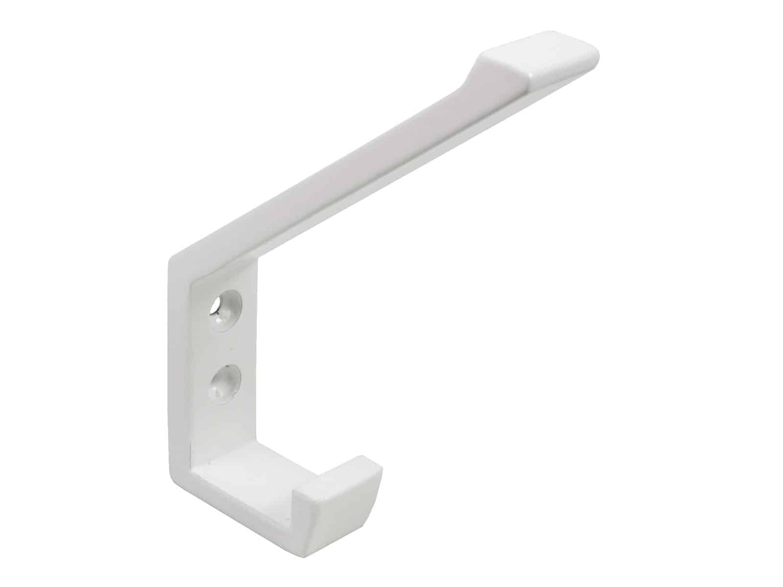 Valkoiseksi pulverimaalattu alumiininen vaatekoukku. Koko 17x110mm.
