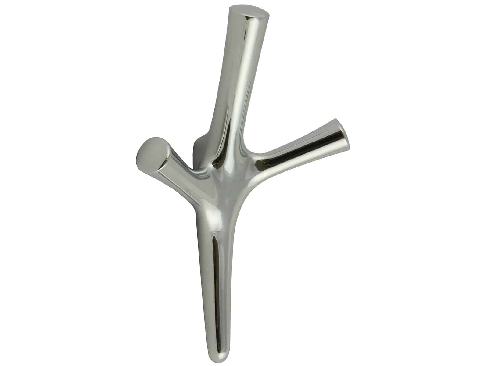 Kolmehaaraista oksaa muistuttava vaatekoukku piilokiinnityksellä. Valmistusmateriaali samakkia, joka on viimeistelty kromin sävyyn.