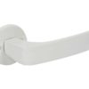 Sini väliovenpainike on ajatonta muotoilua. Pakkauksessa on molemmat kahvat, kiinnitysruuvit 2 kpl ja kara, 1 kpl. Kiinnitysruuvin vastaholkki on kiinteästi kiinni painikkeen kilvessä.