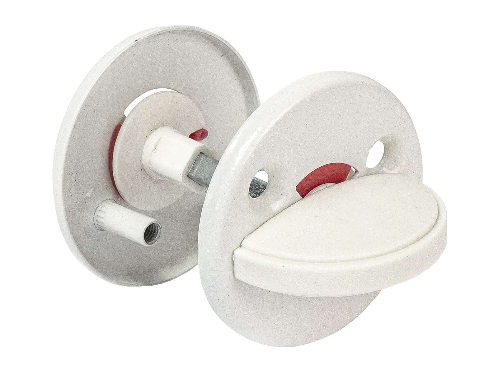 WC-oveen asennettava vääntönuppi. Materiaali teräs, viimeistely maalattu valkoinen. Painike sopii 40 mm vahvuisille oville.